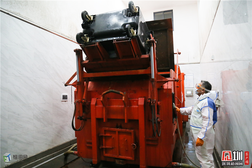 現(xiàn)代化城市生活固然便捷,但是也制造巨量的生活垃圾。垃圾清運人員凌晨3點半起床后開始準(zhǔn)備一天的工作。這段時間,轉(zhuǎn)運站配置1:250的高濃度消毒液,一桶消毒液夠用一個垃圾轉(zhuǎn)運站。記者看到,電動垃圾轉(zhuǎn)運車上的四個環(huán)衛(wèi)消殺工作人員穿著厚厚的白藍(lán)色隔離服,全副武裝迎接來自轄區(qū)源源不斷運過來的垃圾桶,隨著垃圾轉(zhuǎn)運車后滋滋作響的電流聲,車后的平板放下來了,一桶桶垃圾平穩(wěn)有序的拽拉進(jìn)垃圾轉(zhuǎn)運站進(jìn)行壓縮,因工作服的關(guān)系,工作人員眼罩上經(jīng)常被一層厚厚的水霧糊上,工作期間會把手套摘除后,從手心處甩出一把把汗。