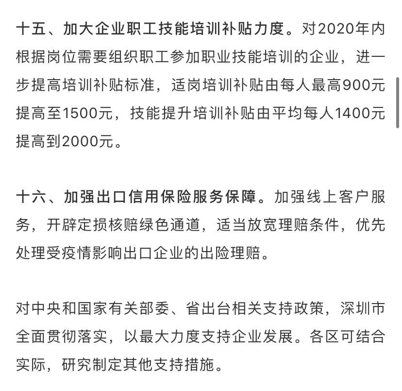 據(jù)了解,為深入貫徹落實(shí)習(xí)近平總書記關(guān)于堅(jiān)決打贏疫情防控阻擊戰(zhàn)的重要指示精神,全面落實(shí)黨中央國(guó)務(wù)院和省委省政府關(guān)于做好新型冠狀病毒感染的肺炎疫情防控工作的決策部署,在做好防控工作的同時(shí)統(tǒng)籌抓好改革發(fā)展穩(wěn)定各項(xiàng)工作,支持企業(yè)共渡難關(guān),保障城市平穩(wěn)運(yùn)行和經(jīng)濟(jì)穩(wěn)定增長(zhǎng),深圳市政府特制定該工作措施。