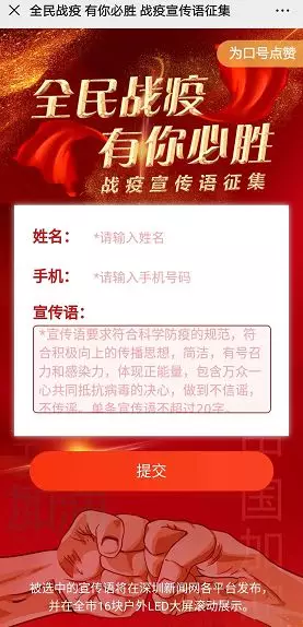 深圳新聞網(wǎng)將結(jié)合網(wǎng)友點(diǎn)贊情況,選出若干條優(yōu)秀的戰(zhàn)疫宣傳語。