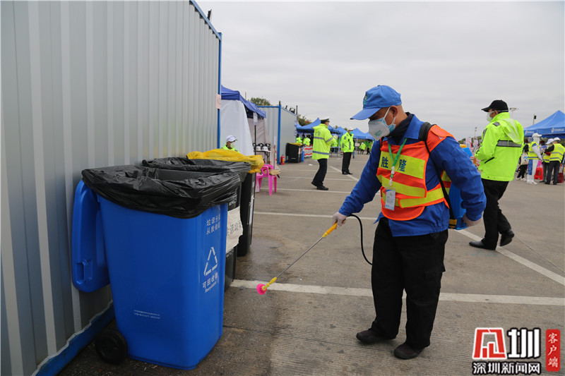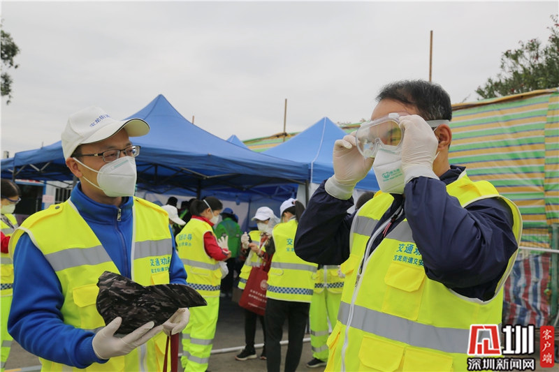“全副武裝”后,龍崗區(qū)文化廣電旅游體育局局長(zhǎng)劉德平(右)準(zhǔn)備上一線(xiàn)。