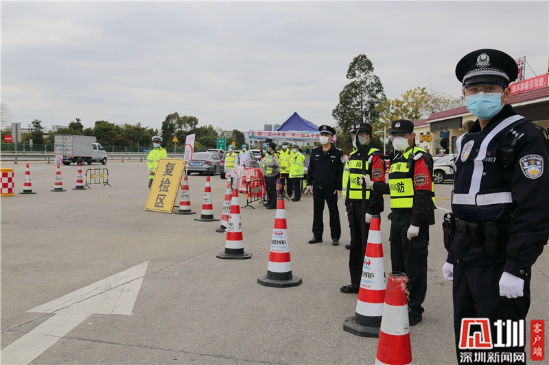 民警李勝仁(右一)在深汕高速龍崗服務(wù)區(qū)(金錢(qián)坳立交)檢查卡點(diǎn)值守。
