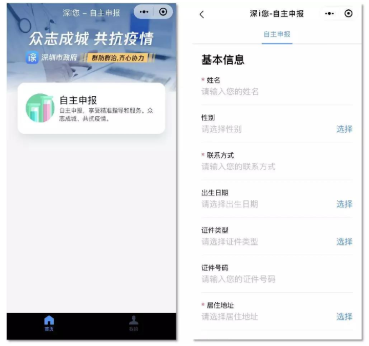 1、微信搜索欄:在微信搜索欄直接搜索“深i您-自主申報(bào)”,按照頁(yè)面提示如實(shí)填寫相關(guān)信息即可;