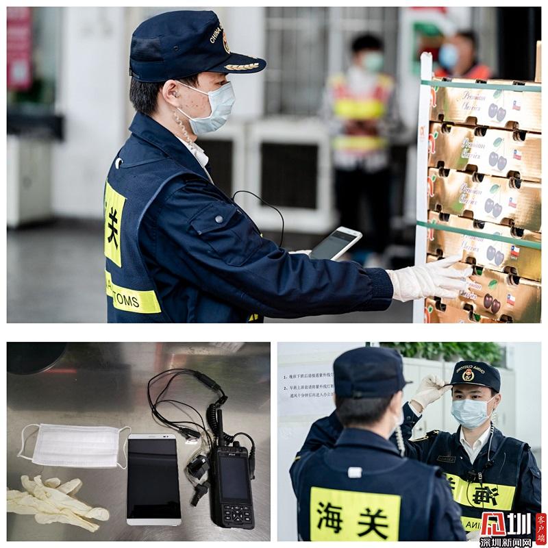 在文錦渡海關(guān)上班的祝子默開始了他上崗的一天。在接受了口岸監(jiān)管場(chǎng)的體溫檢查后,他戴上口罩和手套,裝配上海關(guān)查驗(yàn)單兵設(shè)備,對(duì)進(jìn)口水果實(shí)施查驗(yàn)。