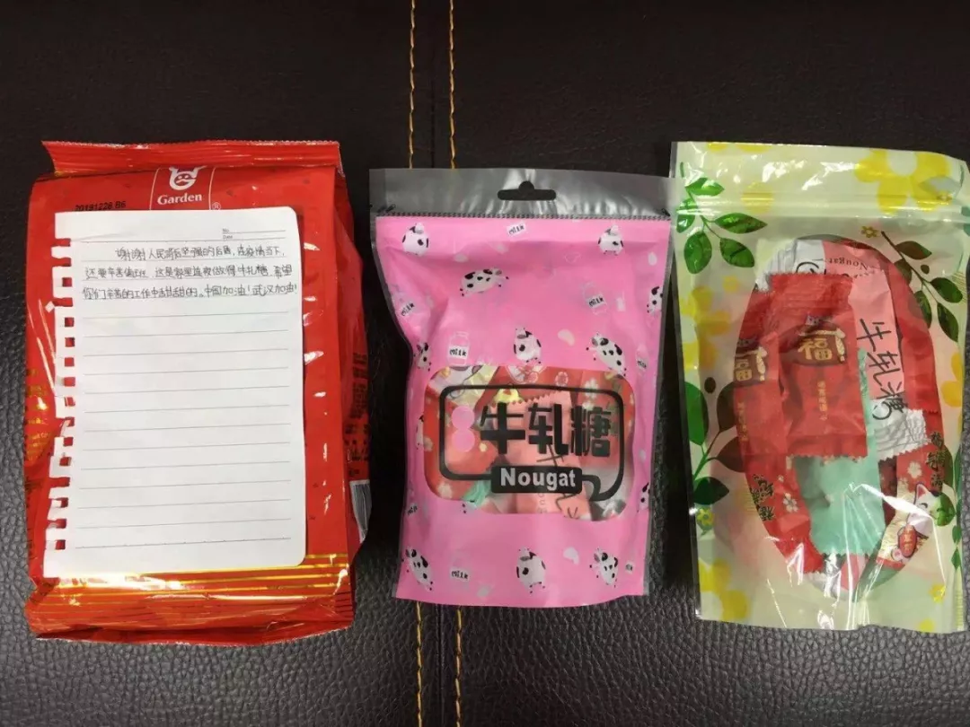 2月4日4時(shí)許,夜深人靜,深圳市公安局福田分局香蜜湖派出所收到了一份特殊的禮物:三袋還帶著余溫的暖心食品,還附著一張小紙條:“謝謝人民背后堅(jiān)強(qiáng)的后盾,在疫情當(dāng)下,還要辛苦值班,這是家里連夜做的牛軋?zhí)?,希望你們辛苦的工作中甜甜的。中國加油!武漢加油!”這名熱心市民表示,上一次到派出所求助的時(shí)候就是深夜凌晨4點(diǎn)鐘,知道派出所的同志深夜的時(shí)候仍在辛苦值班,所以剛剛在家里做好了牛扎糖就迫不及待地馬上送來,希望派出所的同志趁熱吃一點(diǎn),暖暖身子。收到如此暖心的禮物,香蜜湖派出所對(duì)這位熱心市民表示衷心感謝!