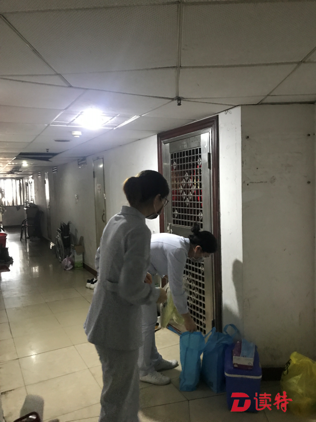 “不同戶換防護裝備,同戶換手套。”保證安全的同時,為了最大限度減少防護裝備的使用量,在為同一戶的不同居民進行采樣時,工作人員會更換手套和頻繁消毒,完成一戶時,才會更換防隔服等防護裝備。