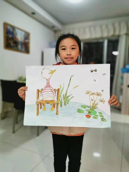 我們自由地花3-4個(gè)小時(shí)畫(huà)一幅畫(huà),為武漢疫區(qū)孩子送去祝福,希望疫情早點(diǎn)過(guò)去,孩子們都像這只《自由的小鴨》一樣,在祖國(guó)的懷抱快樂(lè)地成長(zhǎng)。