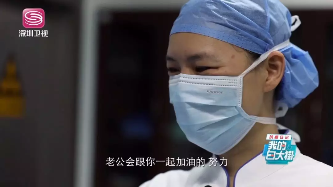 袁曉珊和黃茗勇相處的時間不到十分鐘。離開前,黃茗勇對袁曉珊說,“你們也是日夜奮戰(zhàn)在疫情的最前線當(dāng)中,你們也很危險,希望你能自己保重自己的身體,老公會跟你一起加的,努力!”聽到這番話,袁曉珊點點頭,眼睛眨了眨,透過口罩輕聲說了句“嗯”。
