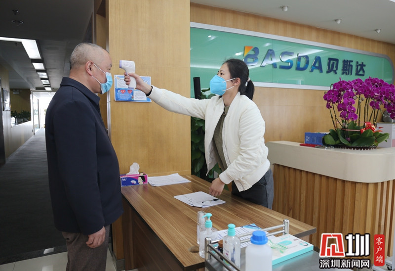 貼著紅對聯(lián)的大門敞開,前臺工作人員帶著口罩整理資料。遇到有同事進入,她提筆登記,隨后拿起測溫槍為同事測體溫,合格后讓入。2月14日,記者在深圳市貝斯達醫(yī)療股份有限公司(以下簡稱貝斯達公司)位于龍崗天安數(shù)碼城的辦公點看到,這里已經(jīng)復(fù)工復(fù)產(chǎn),公司也逐漸恢復(fù)運行。