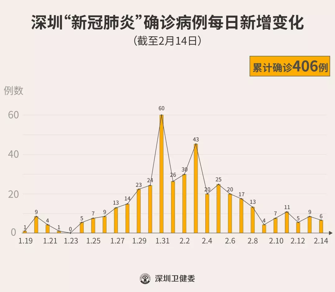 見圳客戶端·深圳新聞網(wǎng)2020年2月15日訊 截至2月14日24時(shí),深圳累計(jì)報(bào)告“新冠肺炎”確診病例406例。2月14日當(dāng)天全市新增確診病例6例(個(gè)案詳情今晚公布)。