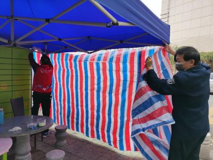 蛇口雷嶺社區(qū)迅速搭建起臨時(shí)圍擋、帳篷