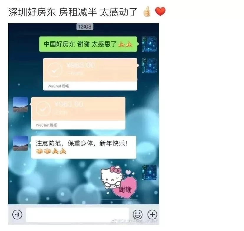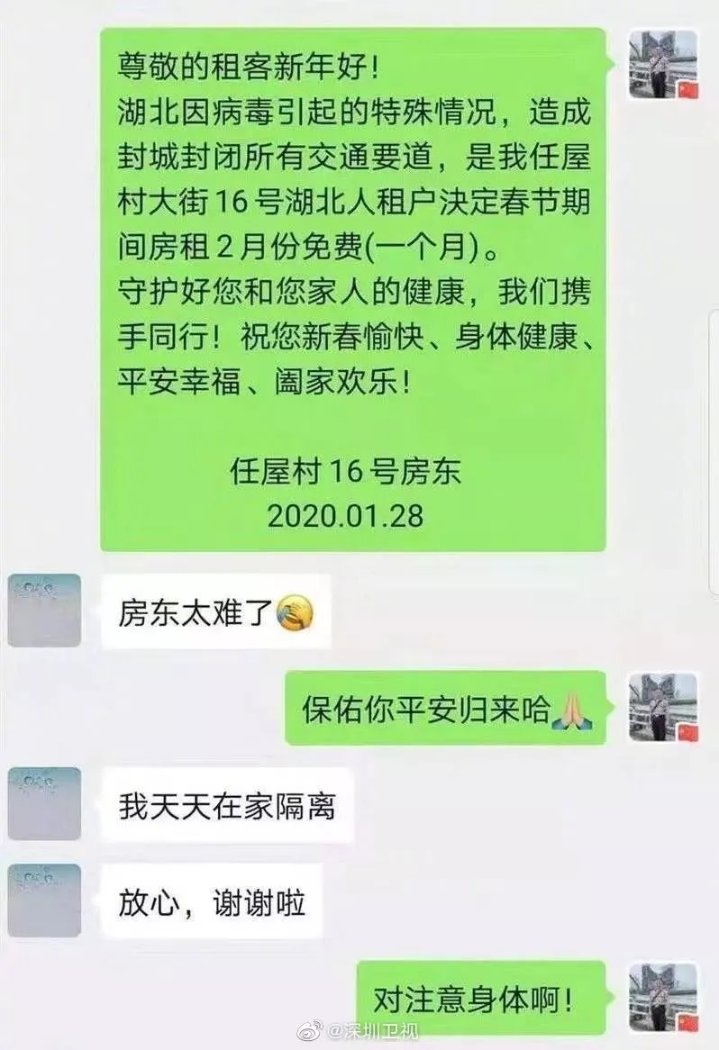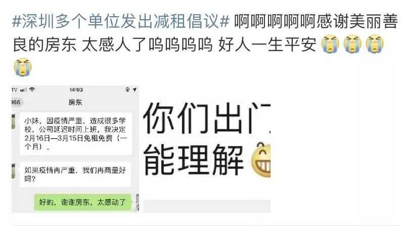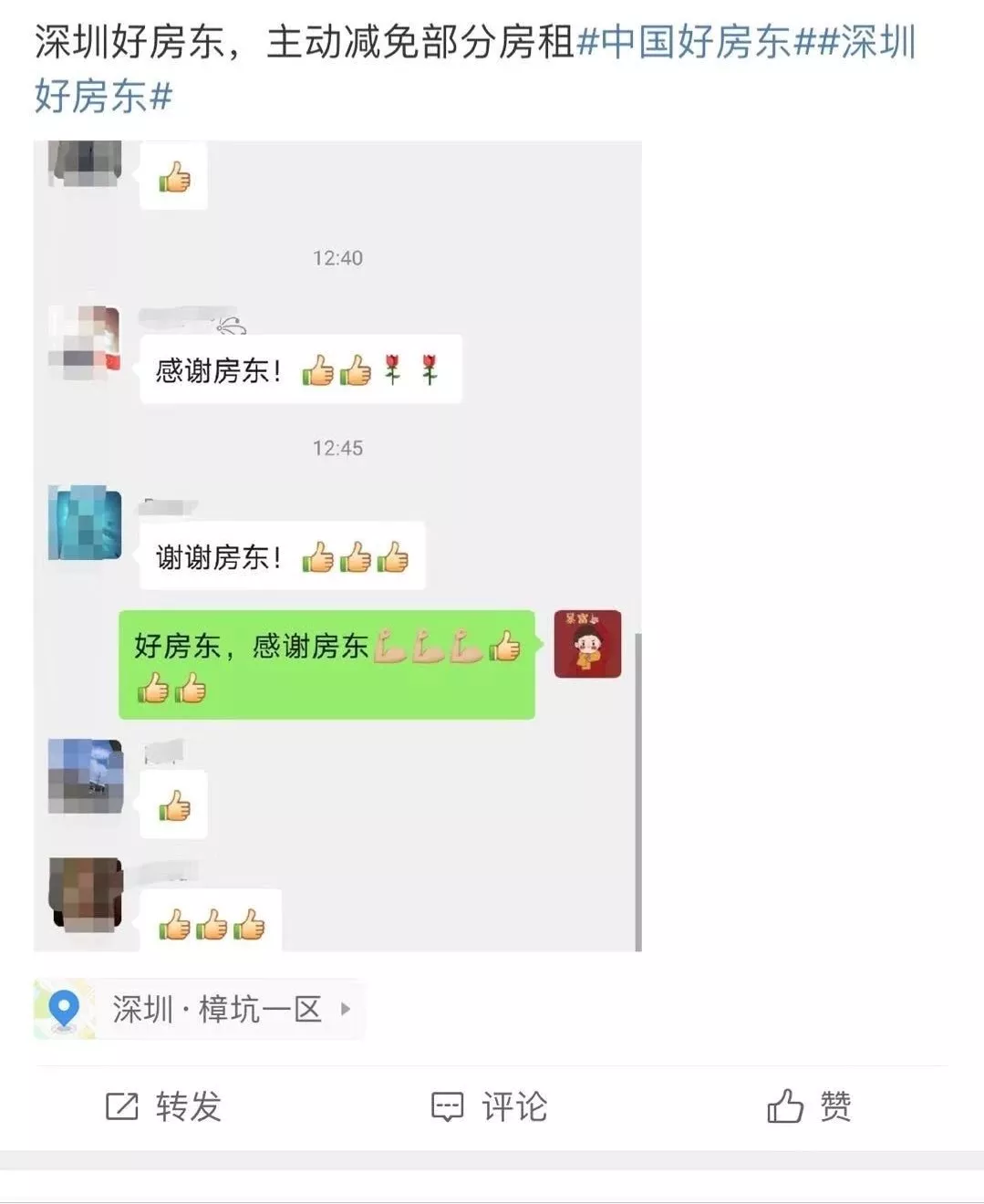 C******a:我有一位龍崗朋友是房東,他們給所有租客都減免了半個(gè)月的房租。暖心感動!