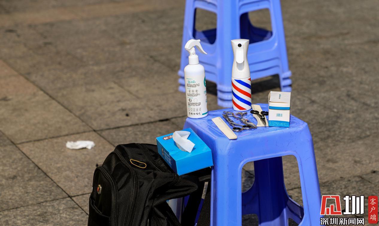 記者在現(xiàn)場注意到,在松崗街道星港城志愿服務U站前,共設置了四個座位,每個座位旁都配備了剪刀、電推、梳子等簡單的理發(fā)工具,由于義剪服務都設在空氣流通順暢的空闊室外,理發(fā)設備只能從簡。此外,每個座位還配有酒精噴霧、酒精棉片等消毒用品。據(jù)現(xiàn)場理發(fā)師介紹,他們每為一位工作人員剪完頭發(fā)后,都會對所有使用過的理發(fā)工具進行消毒。