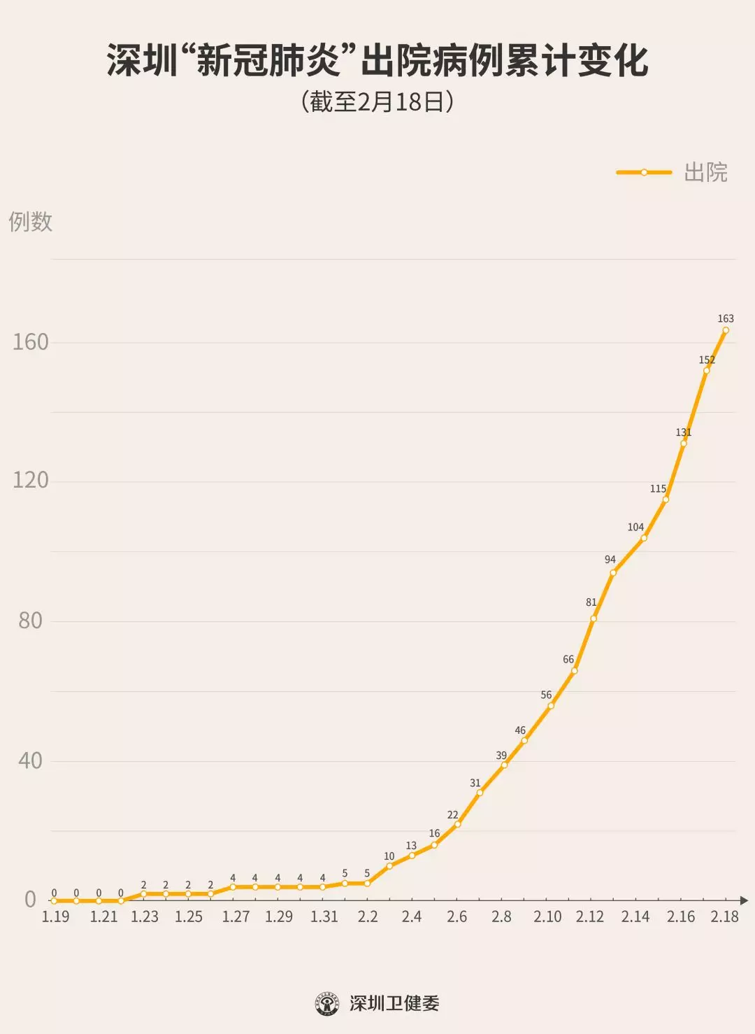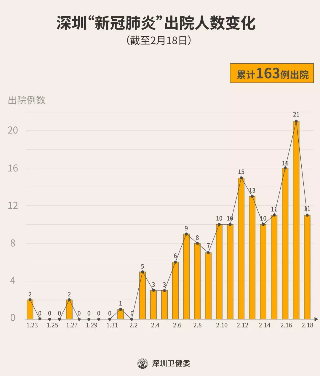 2月18日下午,經(jīng)專家組會診,深圳再有11名新型冠狀病毒肺炎確診患者出院,累計(jì)達(dá)163人,連續(xù)16天有人出院。
