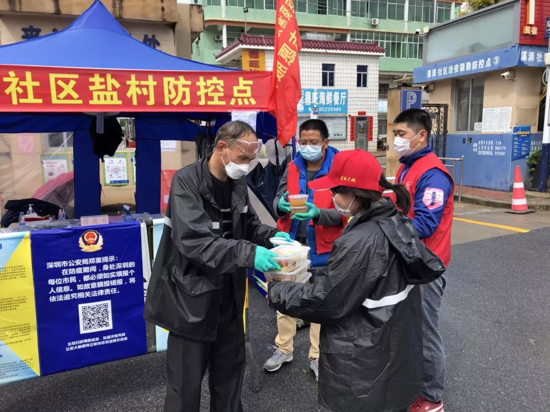 鹽田志愿者徐賢(右三)和伙伴們堅守戰(zhàn)疫一線