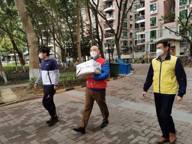 羅湖區(qū)東曉街道東曉社區(qū)某大廈出現(xiàn)確診病例后,志愿者何洪斌每天組織八九個人的義工服務(wù)隊對居家醫(yī)學(xué)觀察人員進行服務(wù)。