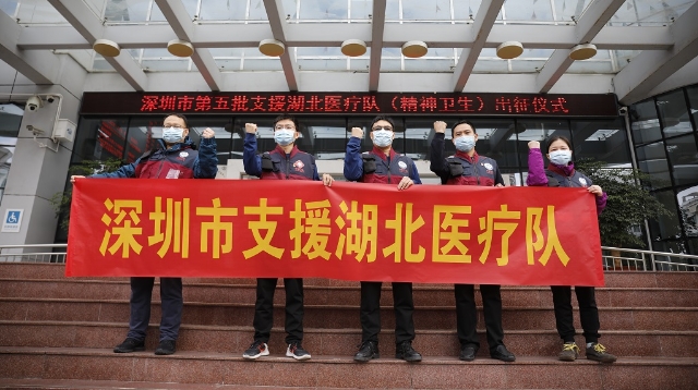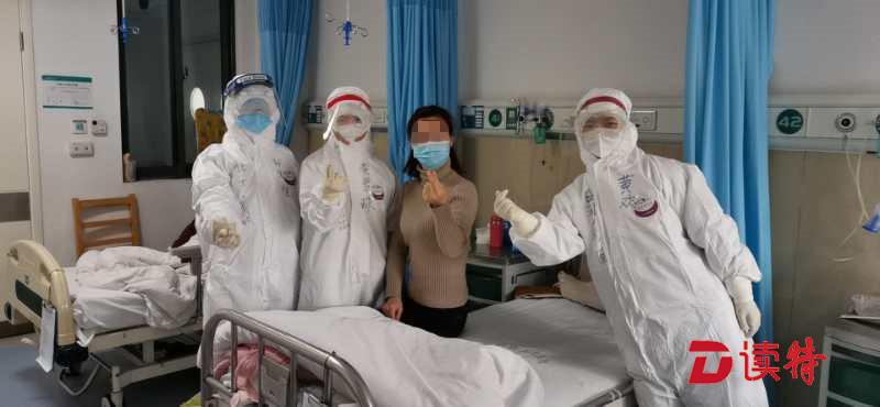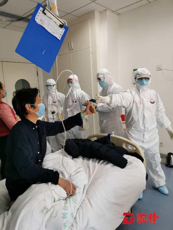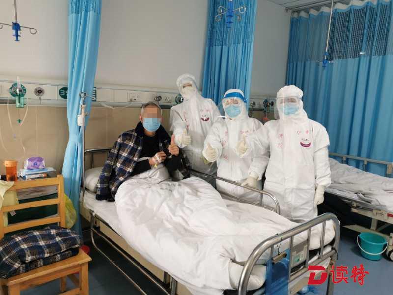深圳醫(yī)療隊(duì)員與患者合影,互相鼓勵。