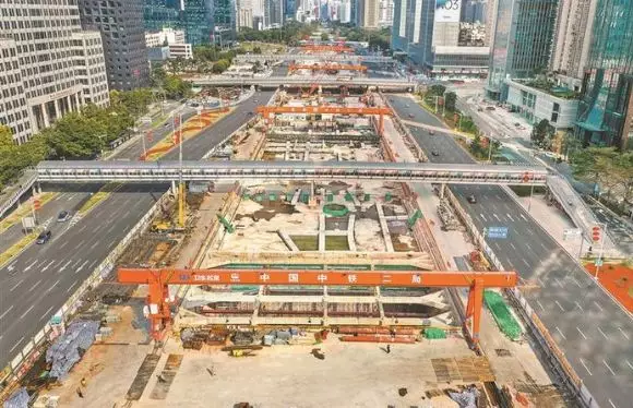 崗廈北綜合交通樞紐建設工地全景。圖自:深圳特區(qū)報