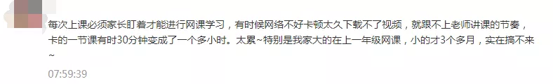 有家長(zhǎng)表示,如果遇上網(wǎng)絡(luò)卡頓,很容易跟不上老師講課的節(jié)奏。還有家長(zhǎng)表示曾出現(xiàn)過(guò)因?yàn)榫W(wǎng)絡(luò)太卡,有時(shí)候設(shè)備剛弄好,課程就已經(jīng)結(jié)束了的情況。