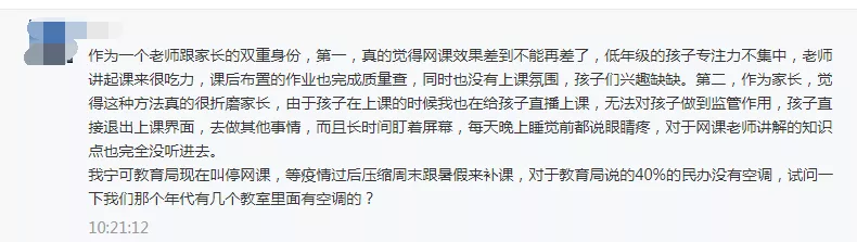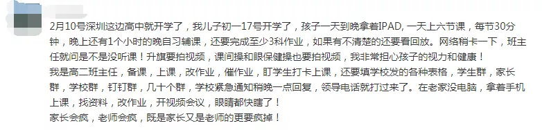一位小學(xué)老師也直言:線上授課效果太差了,寧愿犧牲周末或暑假時(shí)間上課。