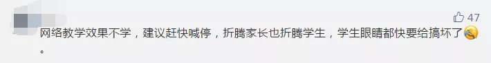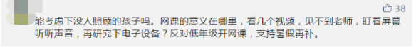 有些參與者則直接留言:由于孩子自律性差,建議低年級(jí)不上網(wǎng)課。