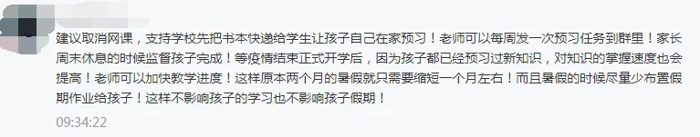 有家長建議把新教材發(fā)給學生,讓學生自學,定期考察學習效果。