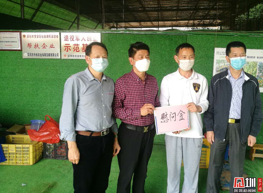 2月22日下午,寶安區(qū)退役軍人事務局局長劉偉、 寶安 區(qū)社會擁軍聯(lián)誼會會長李新華, 以及匯駿豐資產管理有限公司黨支部代表等人 , 專門驅車前往深圳市中樺農業(yè)科研發(fā)展有限公司位于寶安區(qū)燕羅街道的蔬菜基地,慰問該公司員工并送上慰問金。