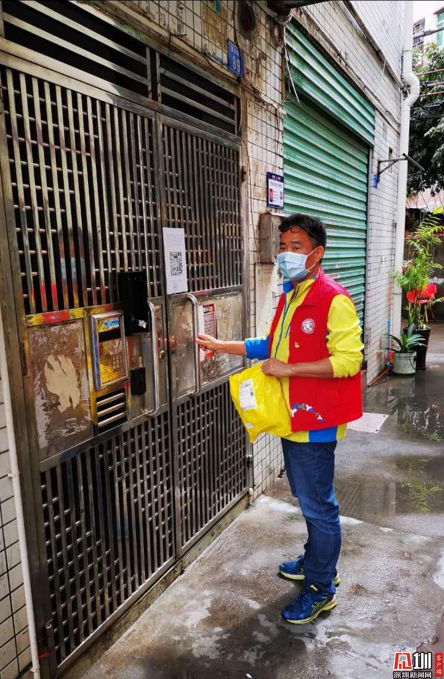 社區(qū)工作人員陳強(qiáng)上門(mén)為居家隔離住戶派送快遞
