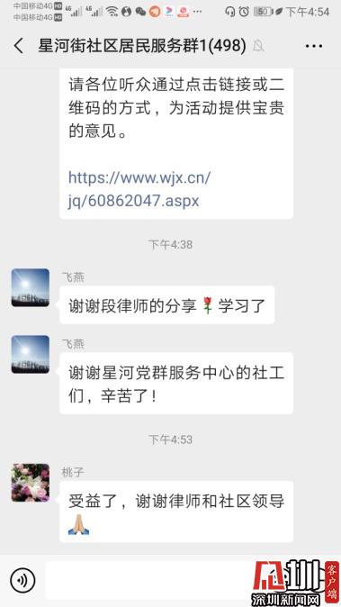 講座還未開始,廣大居民已在線上等待。看到一些居民不太熟悉線上操作,社區(qū)的網(wǎng)格員們紛紛自發(fā)行動,充當(dāng)起各居民群里的網(wǎng)絡(luò)專家,為大家答疑解惑。本次講座主要涉及家庭暴力的立法、執(zhí)行和救濟(jì)等法律問題。段律師以最近網(wǎng)絡(luò)上廣泛關(guān)注的“美妝博主宇芽被家暴”的案例為切入點,通過分析家庭暴力案件的相關(guān)數(shù)據(jù),闡釋了我國《反家庭暴力法》的立法背景以及實施的現(xiàn)狀,并為大家講解在生活中遇到家庭暴力時如何通過法律手段維權(quán),受到大家的一致好評。本次講座收聽人數(shù)達(dá)1500人次,課后大家仍然熱情不減,繼續(xù)在線上相互溝通交流家庭暴力問題。