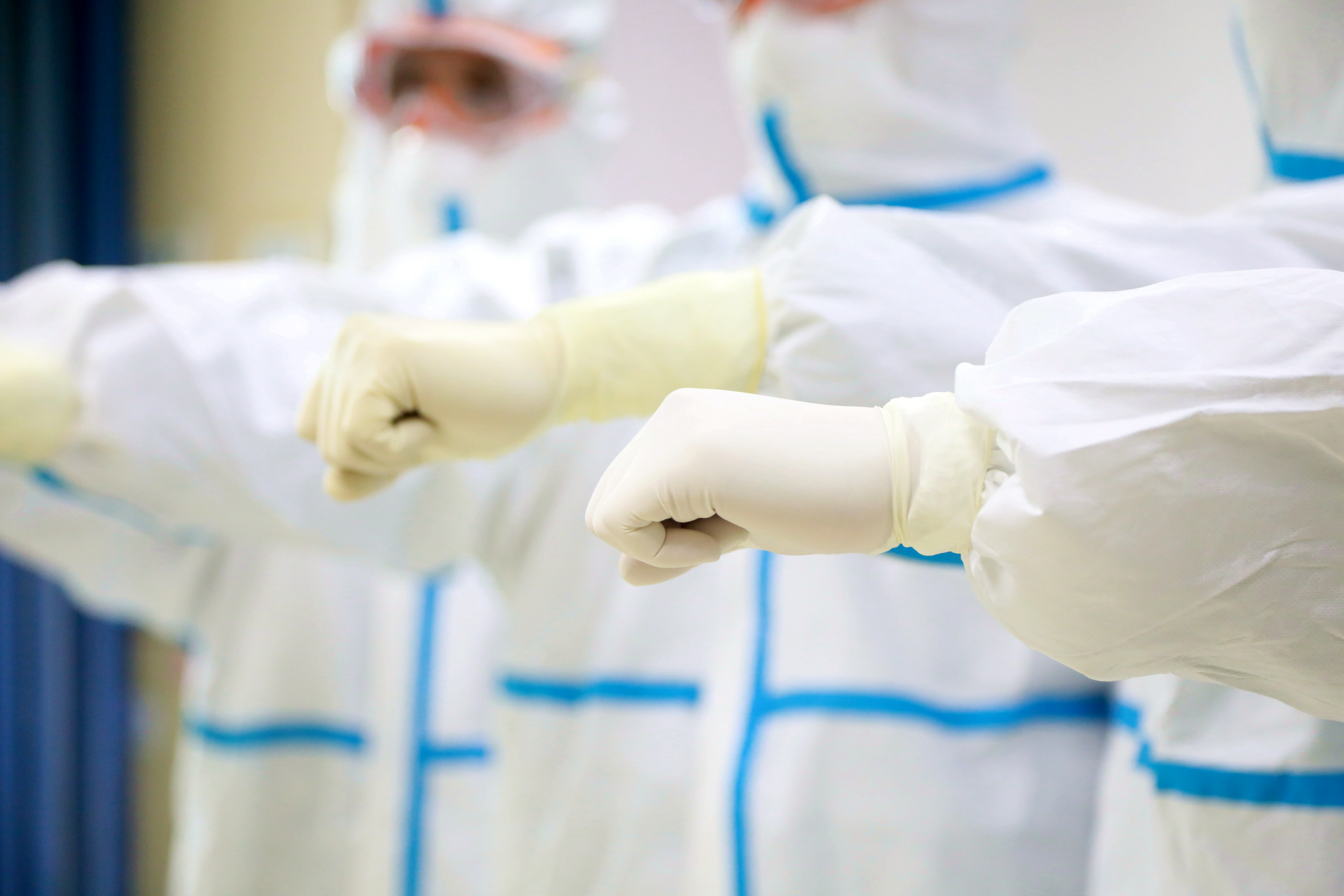 “四小金剛”與珠海中醫(yī)院重癥監(jiān)護科的戰(zhàn)友蘇文平(中)在進入戰(zhàn)位前合影。