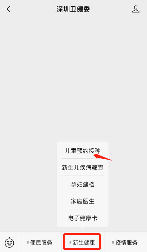 點(diǎn)擊公眾號菜單欄“新生健康”-“兒童預(yù)約接種”▽