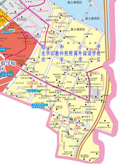 龍華區(qū)教育科學(xué)研究院附屬外國(guó)語學(xué)校小學(xué)部與松和小學(xué)、初中部與新華中學(xué)共享學(xué)區(qū)范圍,兩校在共享學(xué)區(qū)范圍內(nèi)統(tǒng)籌招生。