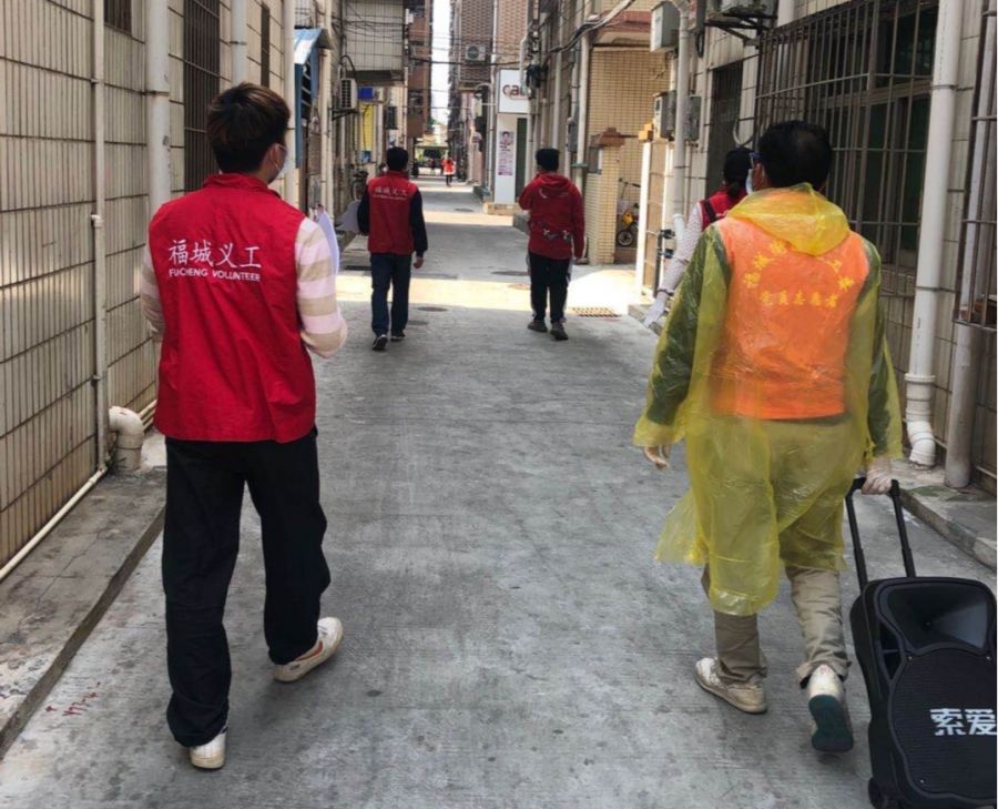 幫助老人填寫“i 深圳”、給來(lái)往居民測(cè)溫