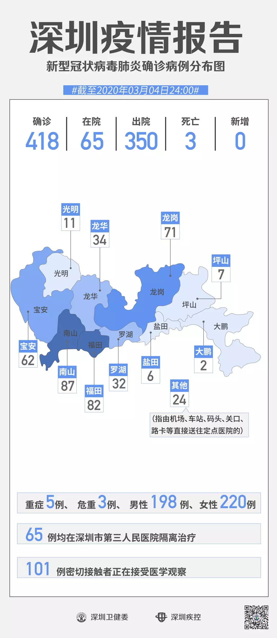 按照病例管理地區(qū)劃分,南山區(qū)87例、福田區(qū)82例、龍崗區(qū)71例、寶安區(qū)62例、龍華區(qū)34例、羅湖區(qū)32例、光明區(qū)11例、坪山區(qū)7例、鹽田區(qū)6例、大鵬新區(qū)2例、其他(指由機場、車站、碼頭、關(guān)口、路卡等直接送往定點醫(yī)院的)24例。