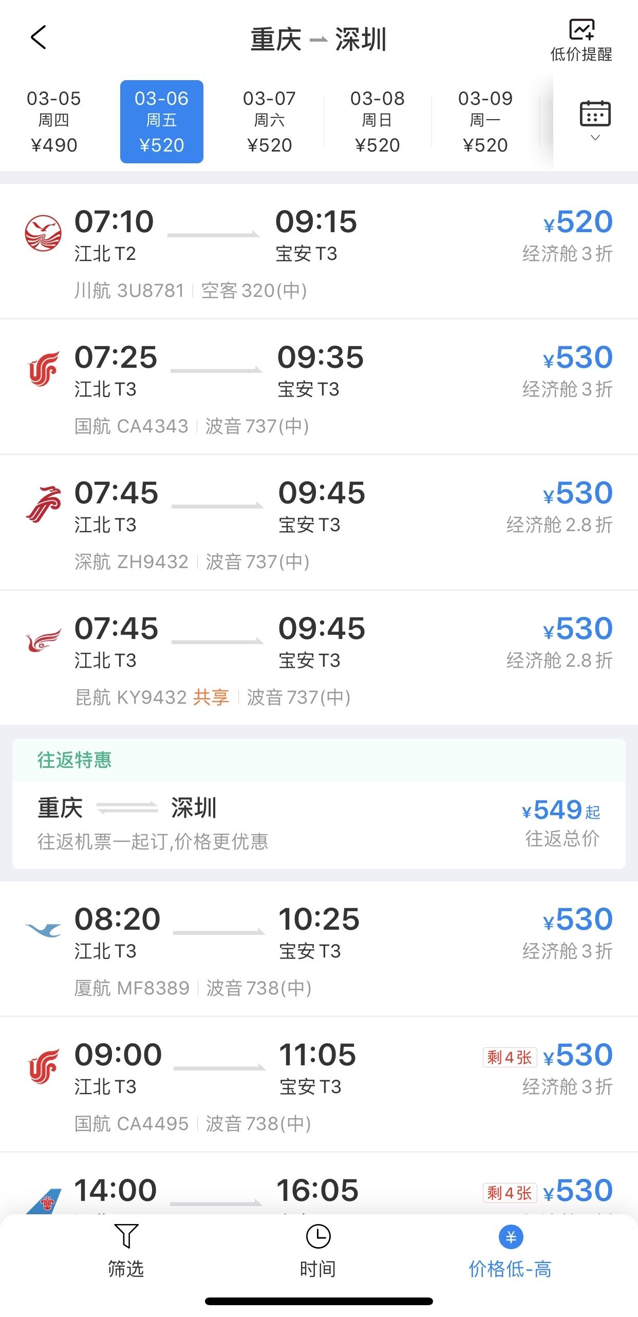 深圳特區(qū)報2020年3月6日訊 “深圳飛重慶的機票才49元!”近日,有市民在查詢機票價格時,被現(xiàn)階段的超低價格震驚了。