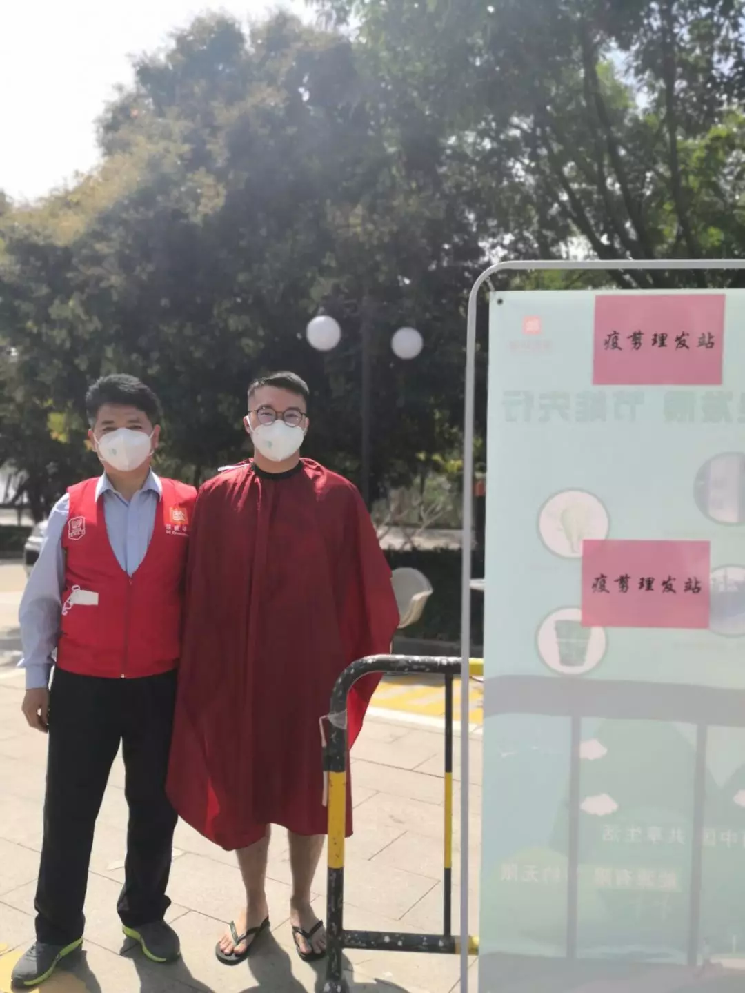 公司本部,1303會(huì)議室,臨時(shí)理發(fā)室“生意”也火爆極了。公司工會(huì)邀請(qǐng)了兩名專業(yè)的Tony老師,為近90名員工提供免費(fèi)的理發(fā)服務(wù)。為減少人員聚集,理發(fā)采取提前線上預(yù)約,分時(shí)段進(jìn)行,確保安全的同時(shí),盡可能讓有需要的同事都能理上發(fā)。鋪上一次性地毯,坐上椅子,圍上一次性“斗篷”,Tony老師一頓熟練的剪發(fā)操作后,再用吹風(fēng)機(jī)整好造型,就完成了理發(fā)的全過程。臨時(shí)理發(fā)師的搭建,有效解決了員工生活上的困難,幫助他們以良好的精神面貌投入工作來。