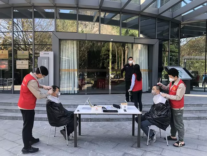 二月二,龍?zhí)ь^,一把椅子、一面鏡子、一套剃發(fā)工具,鹽田能源生態(tài)園的簡易理發(fā)室開張啦。防疫先鋒戰(zhàn)斗隊(duì)五人義剪小分隊(duì)隨即開始行動(dòng),對(duì)理發(fā)室開啟自然通風(fēng),對(duì)理發(fā)用具進(jìn)行消毒,清潔雙手,全部使用一次性“斗篷”,確保理發(fā)過程中一“客”一換一消毒……準(zhǔn)備工作做好后,Tony老師開啟微信排號(hào),統(tǒng)一戴上口罩,測量體溫登記后,提拉剪推,一氣呵成。本次義剪為30余名員工解決了“頭”大事,大家“輕裝上陣”,將以更飽滿的精神投入到疫情防控和安全生產(chǎn)工作中。