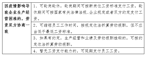 自2月10日起,在受疫情影響延遲復(fù)工或未返崗期間,對不能通過居家遠(yuǎn)程辦公等形式提供正常勞動或用完各類休假仍不能提供正常勞動的職工企業(yè)參照停工、停產(chǎn)期間工資支付相關(guān)規(guī)定與職工協(xié)商工資待遇,即未超過一個(gè)工資支付周期的,用人單位應(yīng)當(dāng)按照正常工作時(shí)間支付工資;超過一個(gè)工資支付周期的,可以根據(jù)勞動者提供的勞動,按照雙方新約定的標(biāo)準(zhǔn)支付工資;