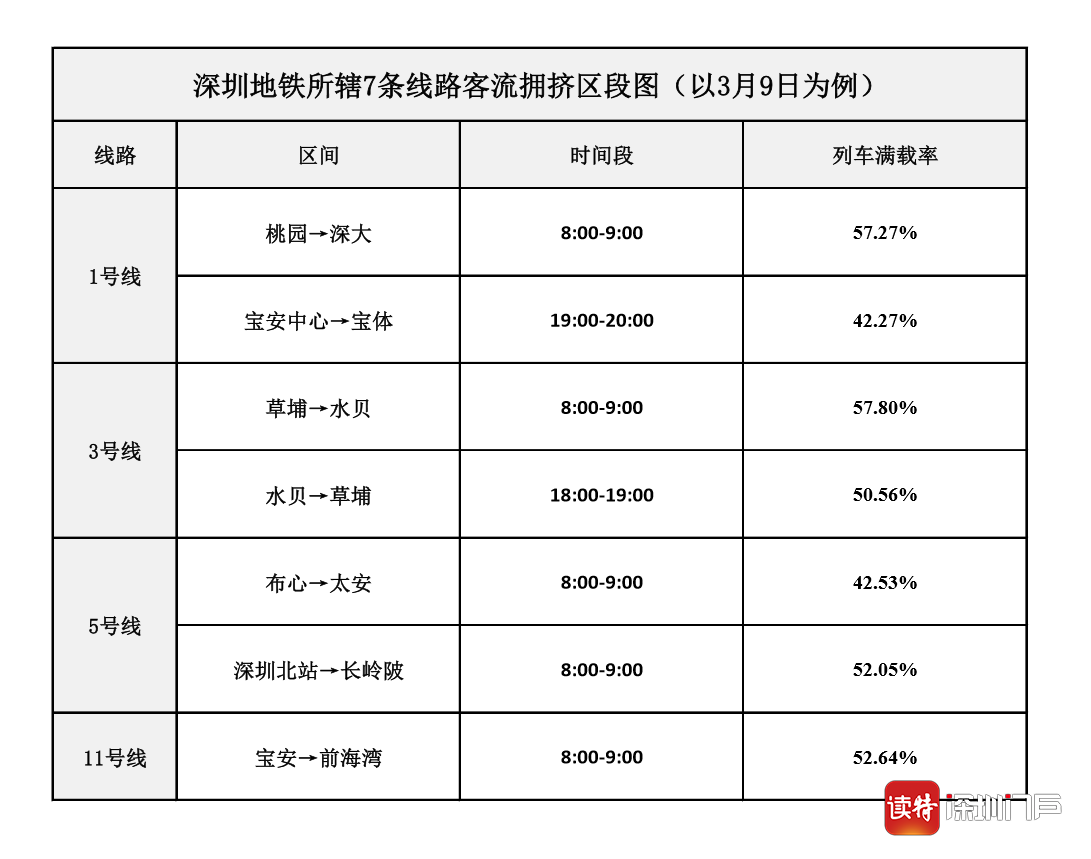 與此同時,深圳地鐵也對近期各線路區(qū)段的客流變化規(guī)律進(jìn)行了全面分析。數(shù)據(jù)顯示,地鐵列車滿載率超過40%的時段(指實際列車載客人數(shù)占比為額定載客人數(shù)的4成以上),主要集中在早上8:00至9:00之間。其中,1號線固戍至深大區(qū)段、3號線丹竹頭至老街區(qū)段、5號線民治至西麗區(qū)段和長龍至太安區(qū)段、11號線橋頭至后海區(qū)段的客流均相對較大。市民乘客在高峰期如需搭乘地鐵,可留意各線路區(qū)段的擁擠情況,提前合理規(guī)劃乘車路線、錯峰出行。