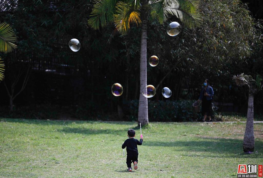 蓮花山公園,一位孩子正在玩吹泡泡。