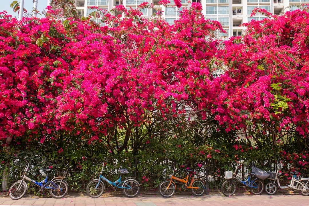 寶安航城街道機場南路兩旁,風(fēng)鈴木花綻放。