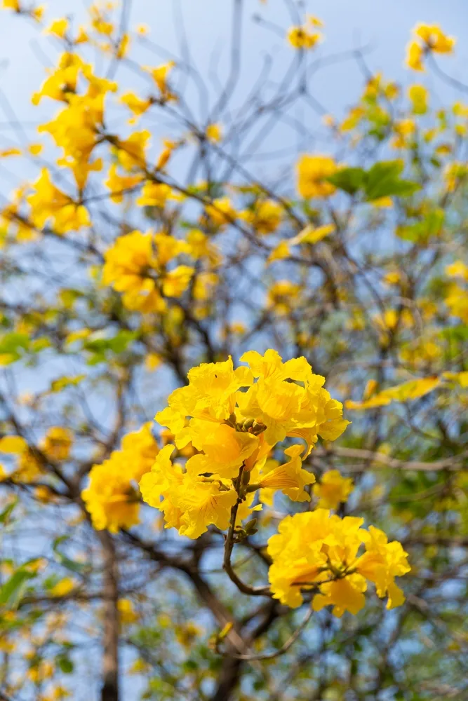 黃花風(fēng)鈴木迎著和煦的春風(fēng)驚艷綻放,
