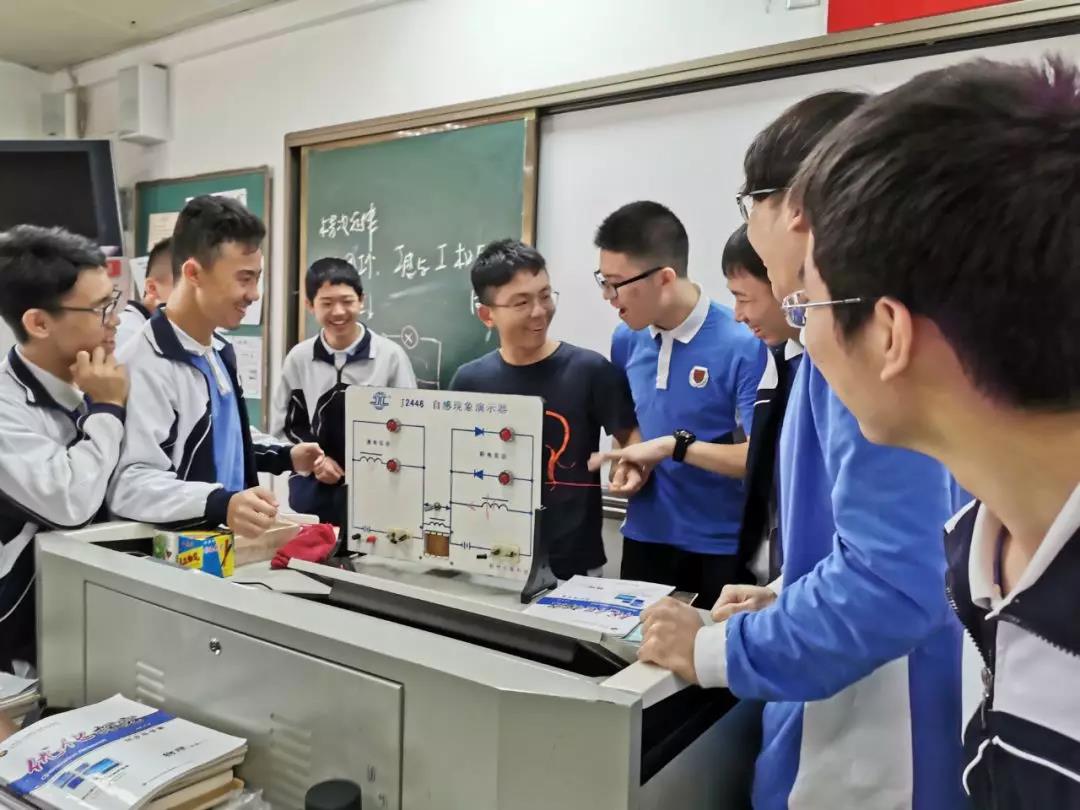 據(jù)黃老師介紹,二實(shí)這個(gè)《課題》,目標(biāo)是將經(jīng)典習(xí)題教學(xué)和實(shí)驗(yàn)創(chuàng)新聯(lián)姻,讓兩者相得益彰,讓習(xí)題教學(xué)成為培養(yǎng)科學(xué)思維和實(shí)踐意識(shí)的主陣地之一,提高學(xué)生的學(xué)習(xí)興趣和效果?!奥?tīng)話(huà)的繩子”“新桃園三結(jié)義”“比比哪本書(shū)更大”“銅管中的時(shí)空隧道”“千人震”......這些都是該課題的物理實(shí)驗(yàn)的創(chuàng)新做法。二實(shí)物理老師們把這些實(shí)驗(yàn)名稱(chēng)叫做“胖問(wèn)題”,目的在于通過(guò)形象化提高同學(xué)們實(shí)驗(yàn)探究的興趣,其對(duì)應(yīng)的物理核心考點(diǎn)“瘦問(wèn)題”分別是:“力的平行四邊形定則”“平拋運(yùn)動(dòng)的分解”“繩桿關(guān)聯(lián)速度”“銅管中的電磁感應(yīng)”“自感現(xiàn)象”等。