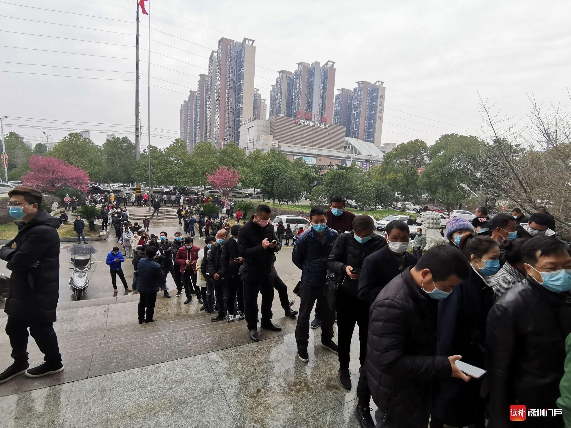 2月23日,監(jiān)利縣交通局門前排隊申請返回工作地的當?shù)厝罕姟2痪?,湖北再次升級封控措施,直到近日才逐漸恢復正常交通。