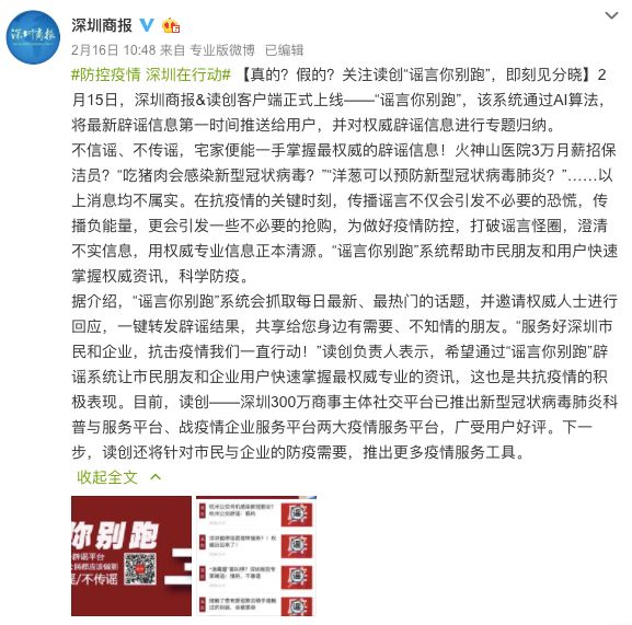 疫情發(fā)生后,深圳商報(bào)全體編輯24小時(shí)在線,用新媒體形式、全媒體平臺,把政府最新政策和網(wǎng)友關(guān)注熱點(diǎn)第一時(shí)間傳遞出去。