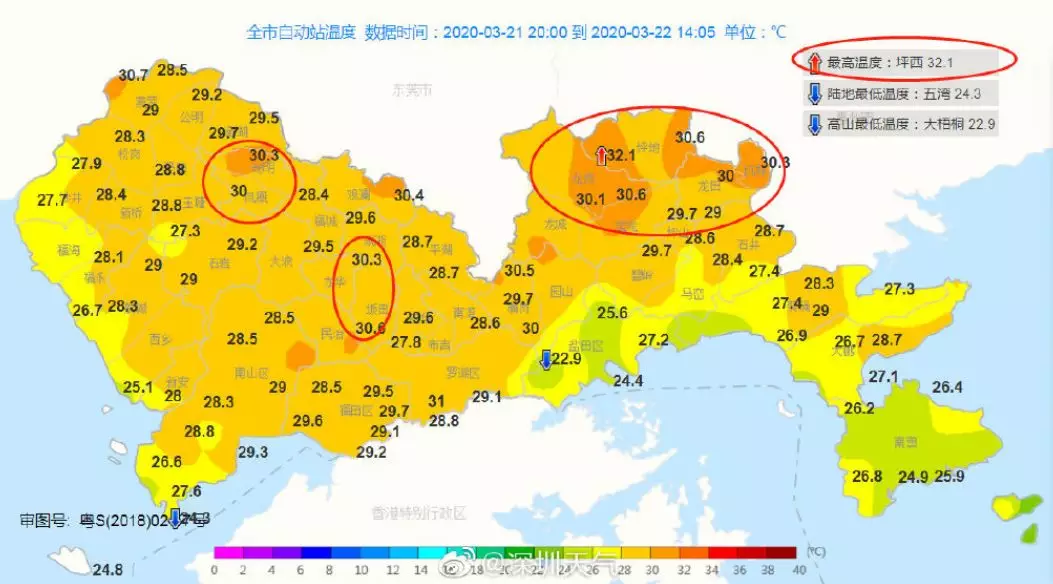 深圳有好幾個(gè)地方氣溫超過了30℃。