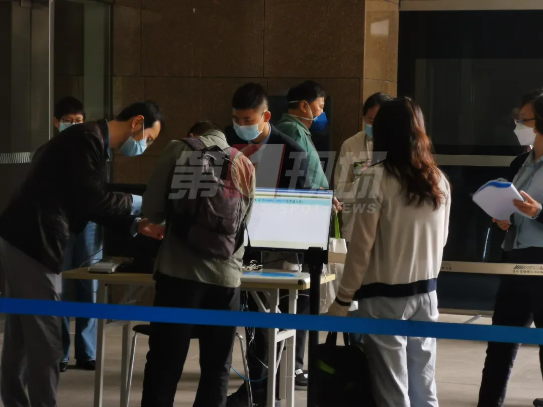 ●場(chǎng)所只開啟了唯一一個(gè)進(jìn)出通道,預(yù)約人員在這里檢測(cè)體溫和登記;
