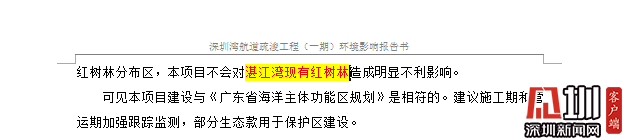 記者在《環(huán)評報告》中看到,有關(guān)表述存在錯誤屬實,在對深圳灣航道疏浚工程(一期)項目可實現(xiàn)的目標的闡述中,將“深圳市的目標”闡述為“湛江市的目標”;將“深圳灣紅樹林”表述成“湛江灣紅樹林”;將“深圳市國民經(jīng)濟”表述成“湛江市國民經(jīng)濟”;將“深圳海事局”表述成“湛江海事局”等。