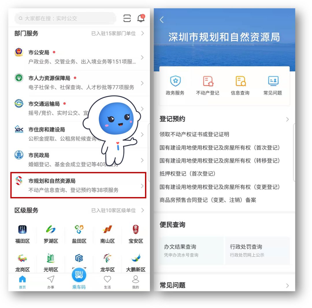 在深圳,想享受購(gòu)買首套住房的相關(guān)政策優(yōu)惠,必須提供無(wú)房證明。以前,市民朋友須在工作日請(qǐng)假,帶身份證到不動(dòng)產(chǎn)登記中心排隊(duì)辦理?,F(xiàn)在您可在“i深圳”APP市規(guī)劃和自然資源局專區(qū)自助“秒辦”無(wú)房證明。