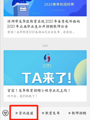 1)進入“龍華教育”公眾號,點擊“資訊速遞”;