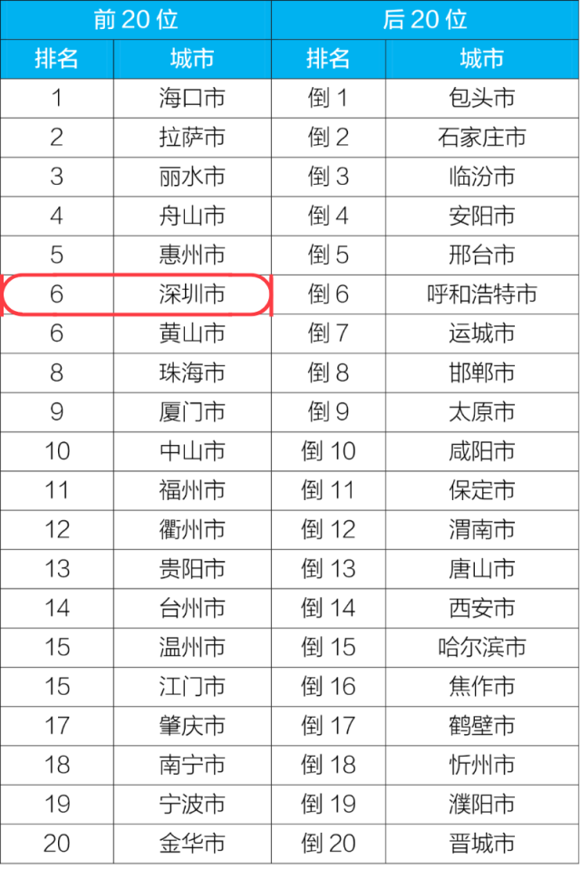 1-3月空氣質(zhì)量全國(guó)深圳排名第6